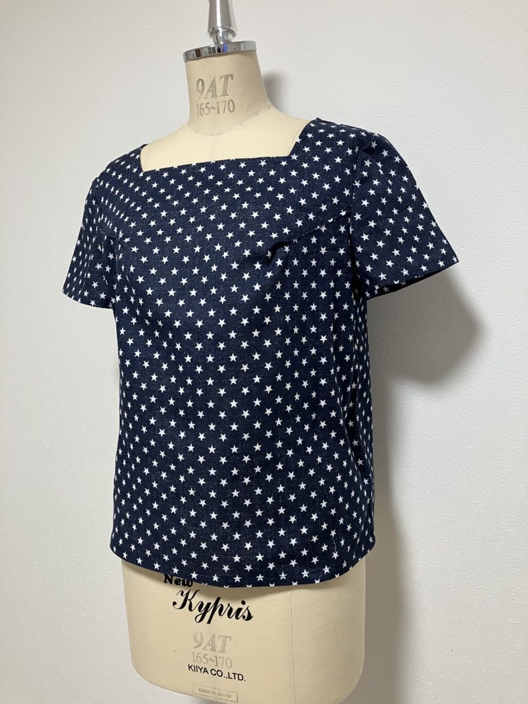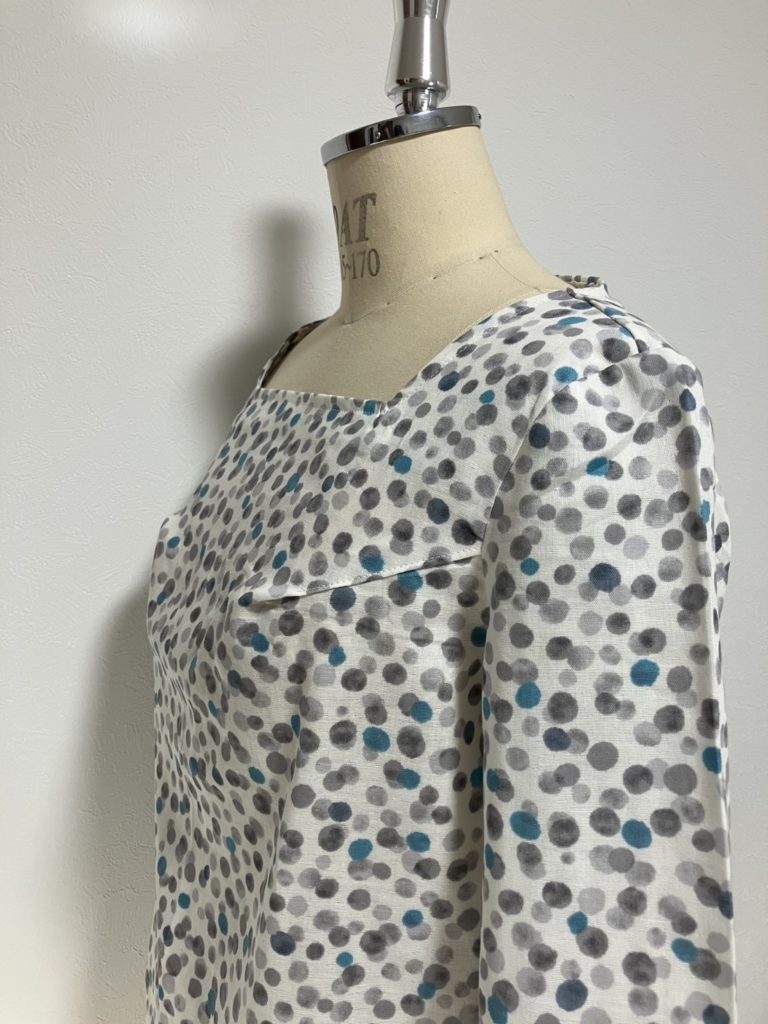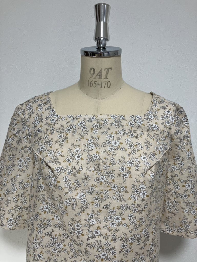 ダブルガーゼでお作りいたしました、スクエアネックのとても軽くて涼しいお品です